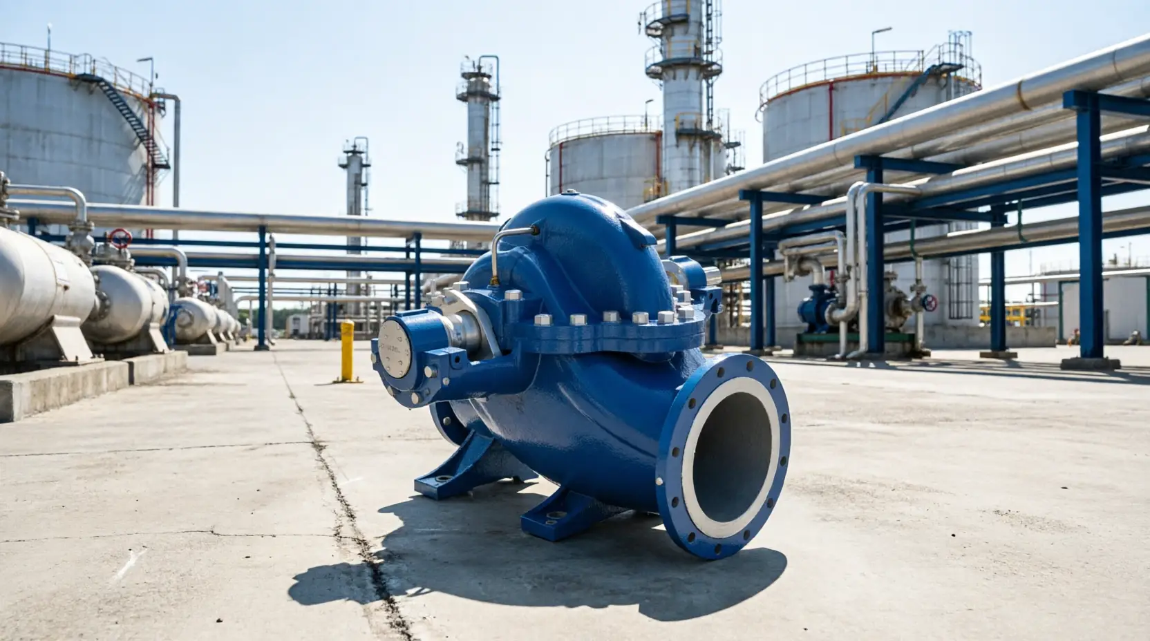 Bomba de carcasa partida horizontal de etapa simple (BB1), con doble succión y alta eficiencia hidráulica, diseñada para grandes caudales y operación confiable, apta para montaje horizontal o vertical y múltiples opciones de sellado, ideal para abastecimiento de agua, redes contra incendio y sistemas industriales, operando hasta 31.800 m³/h y 20 bar.