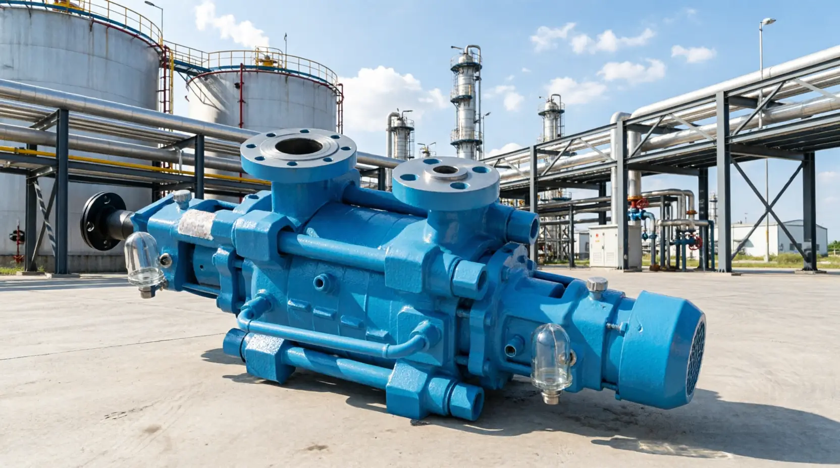 Bomba horizontal multietapa tipo BB4, conforme a API 610 / ISO 13709, de carcasa radialmente partida y anillo segmentado, diseñada para altas presiones y grandes alturas, que ofrece fácil mantenimiento y alta confiabilidad en servicios críticos como calderas, desalinización y minería, operando hasta 1.700 m³/h y 180 bar.